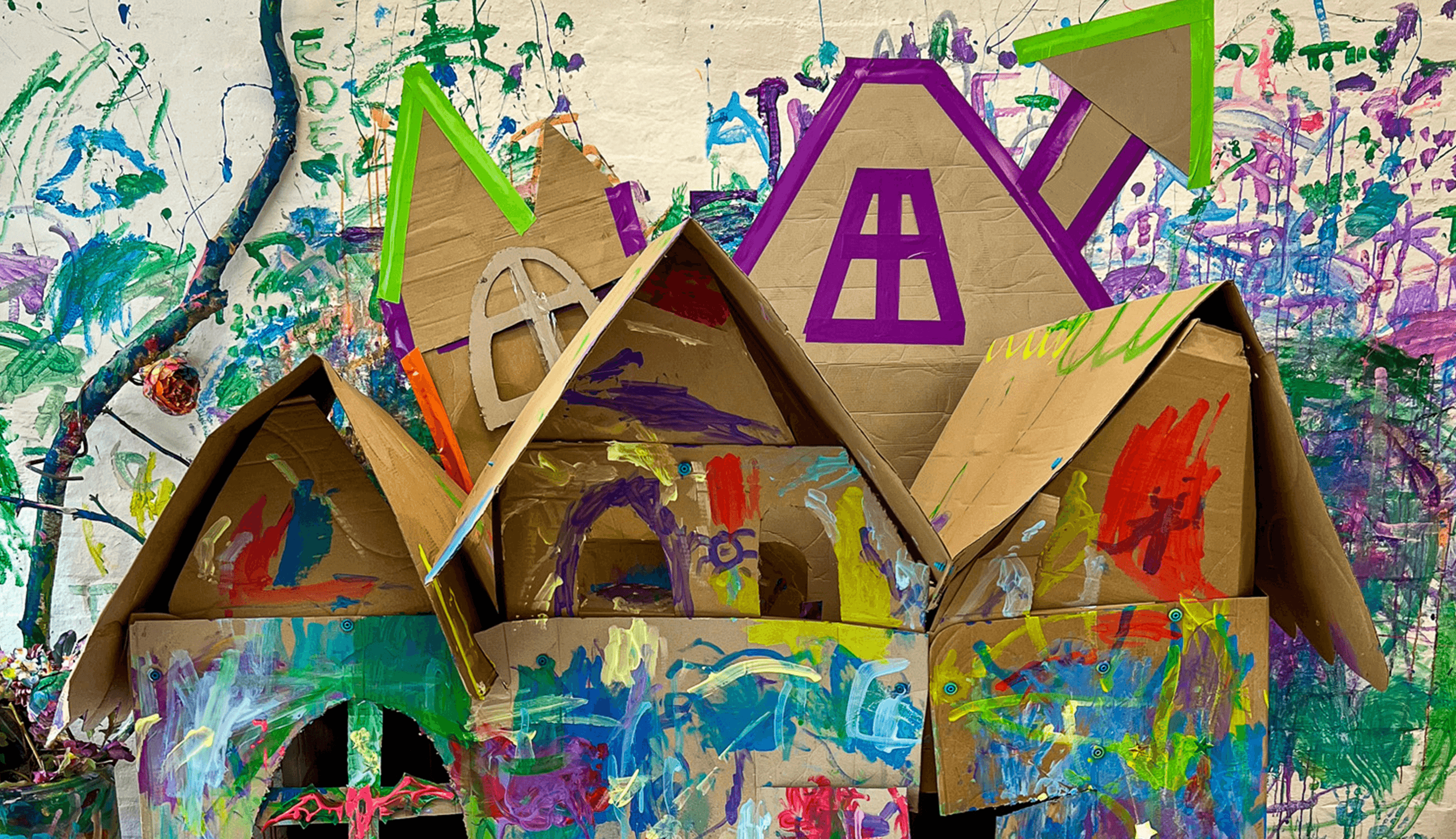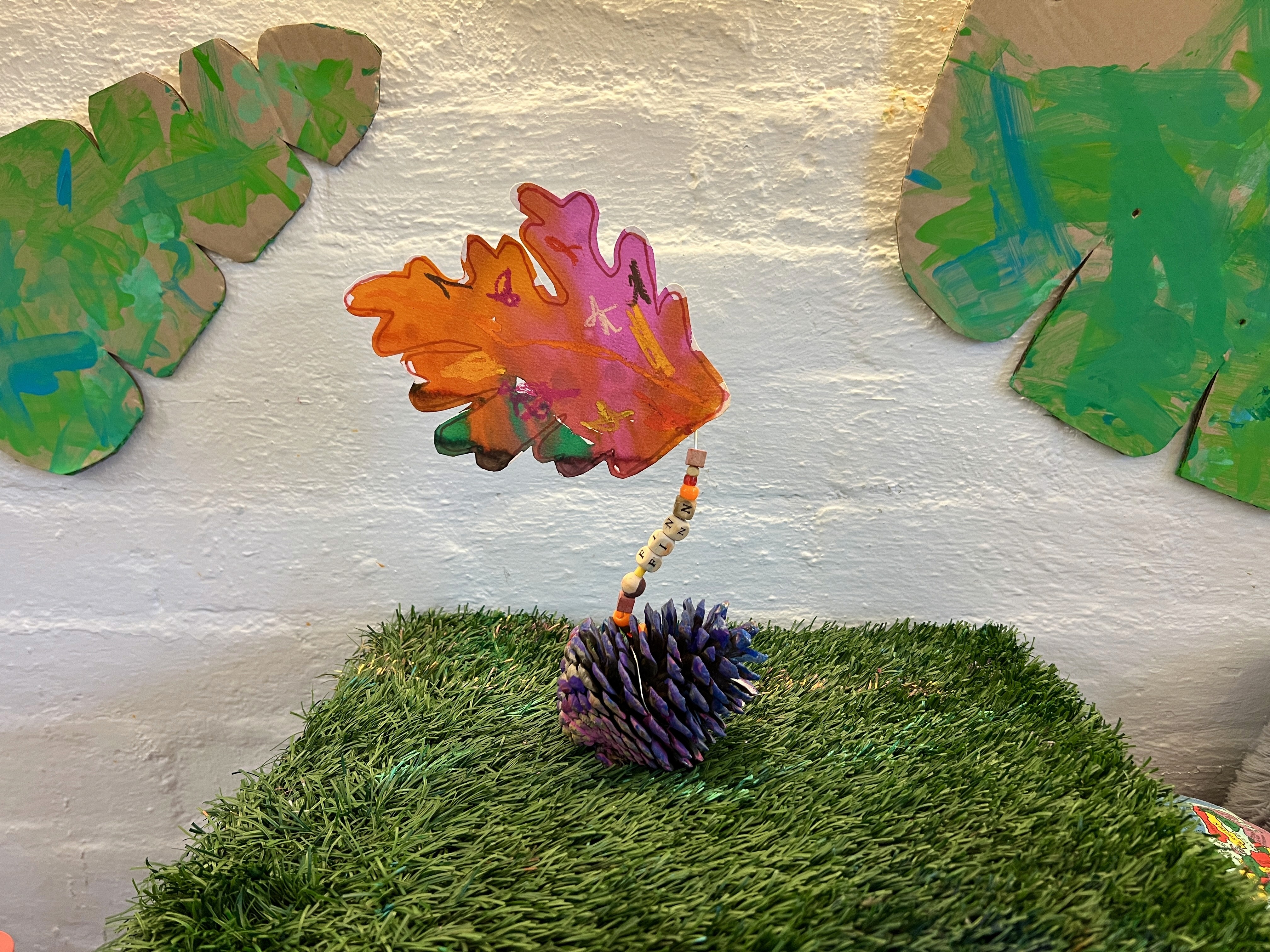 Bold colour spraying, sculpting with pinecones and clay, collaging autumn leaves, and discovering textures through play.