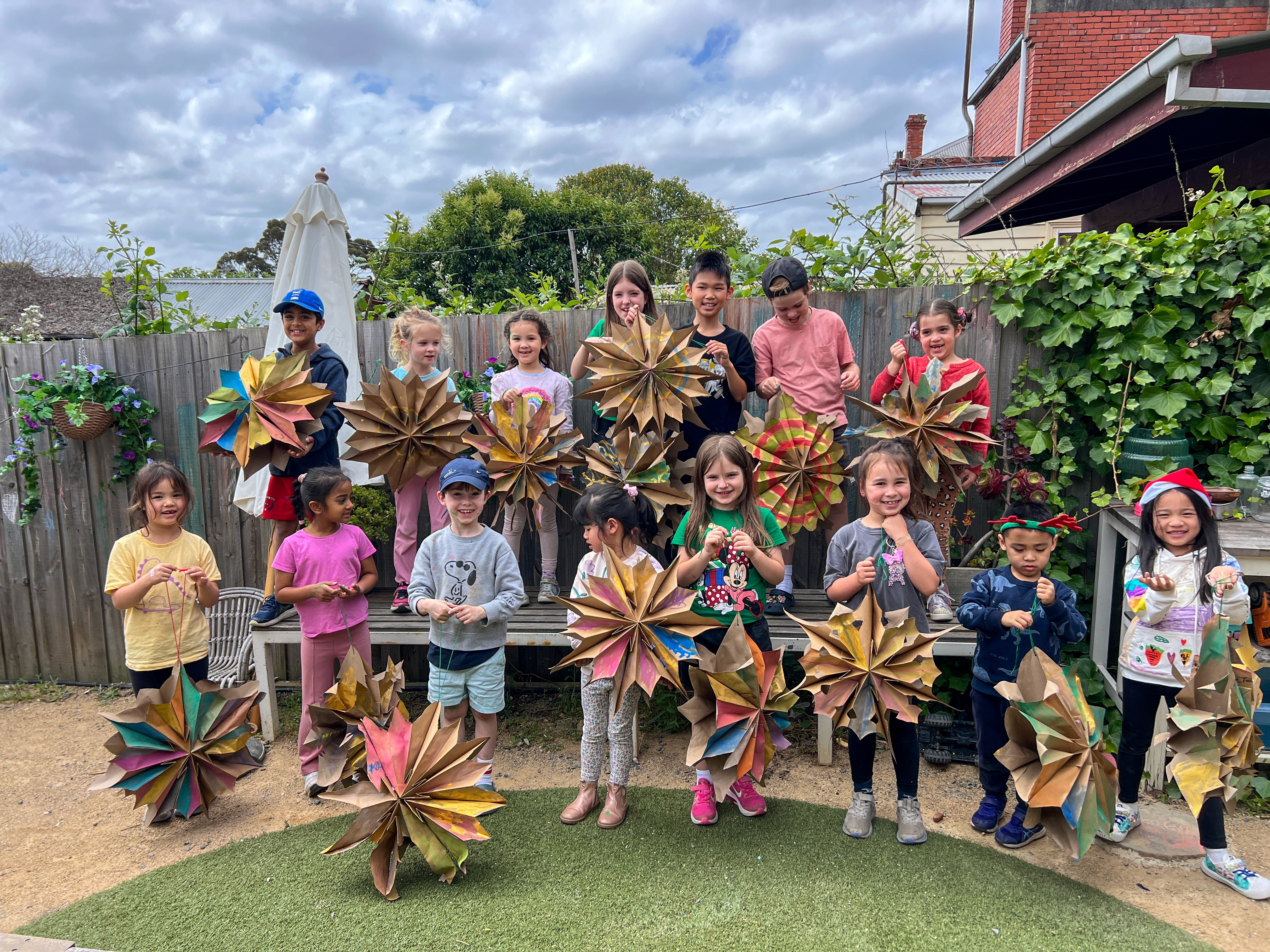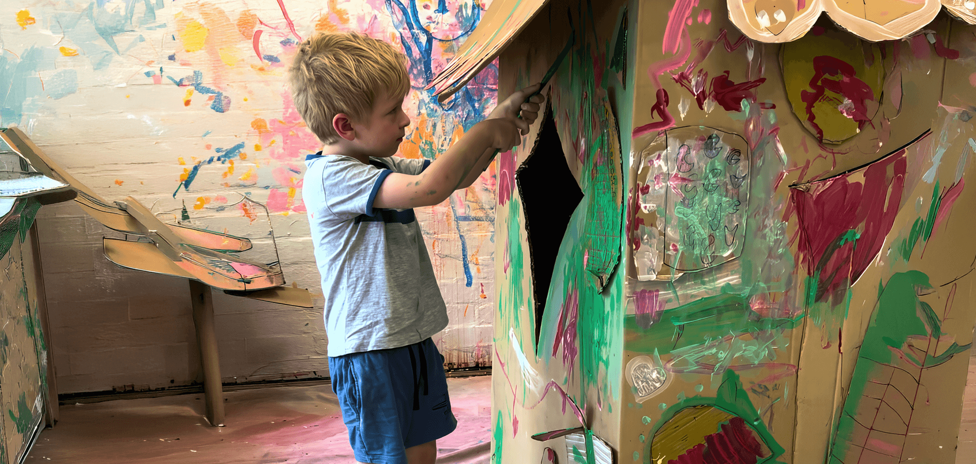 Keep it friendly (not frightful) with bright colour, soft textures, simple tools.