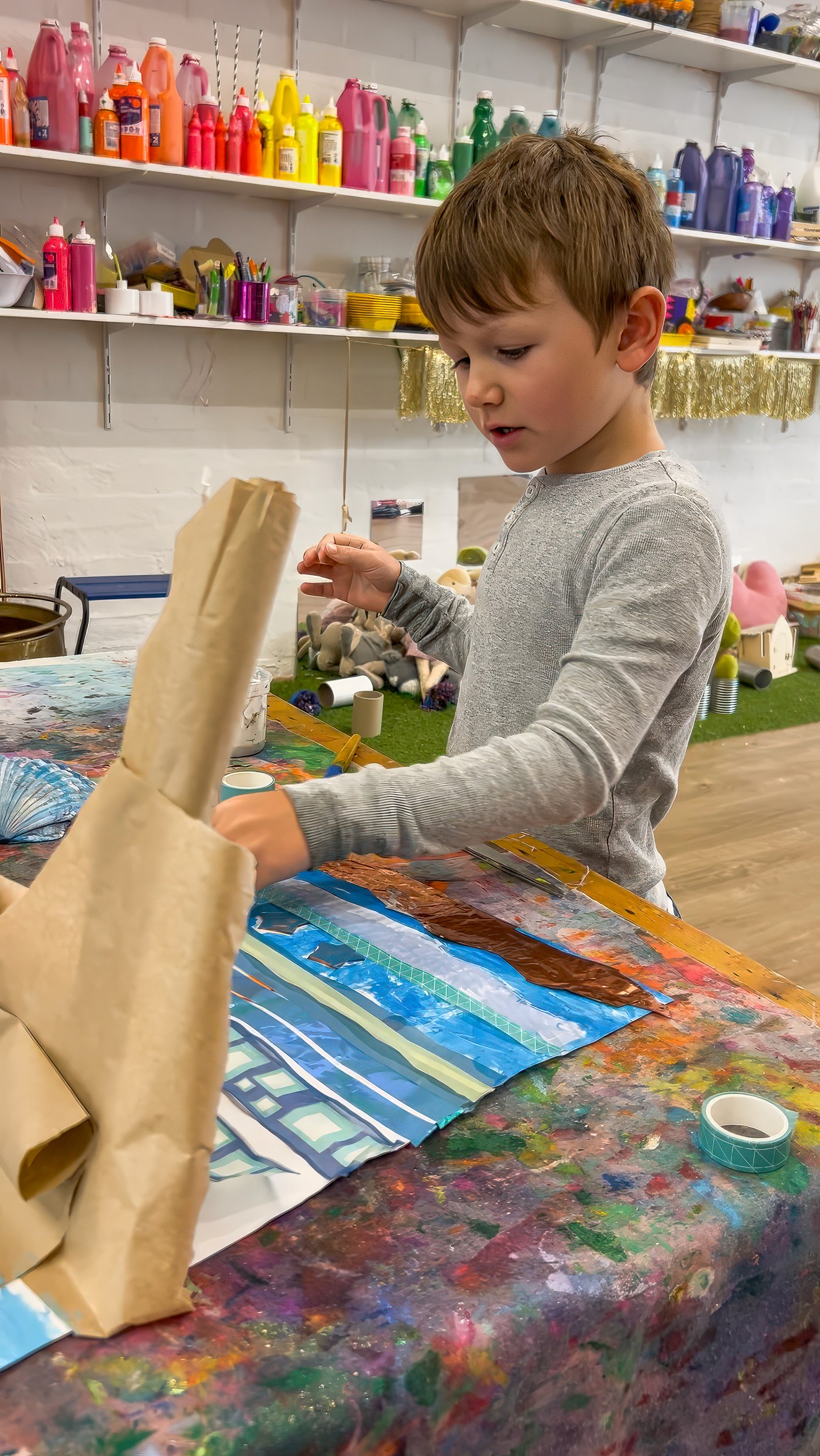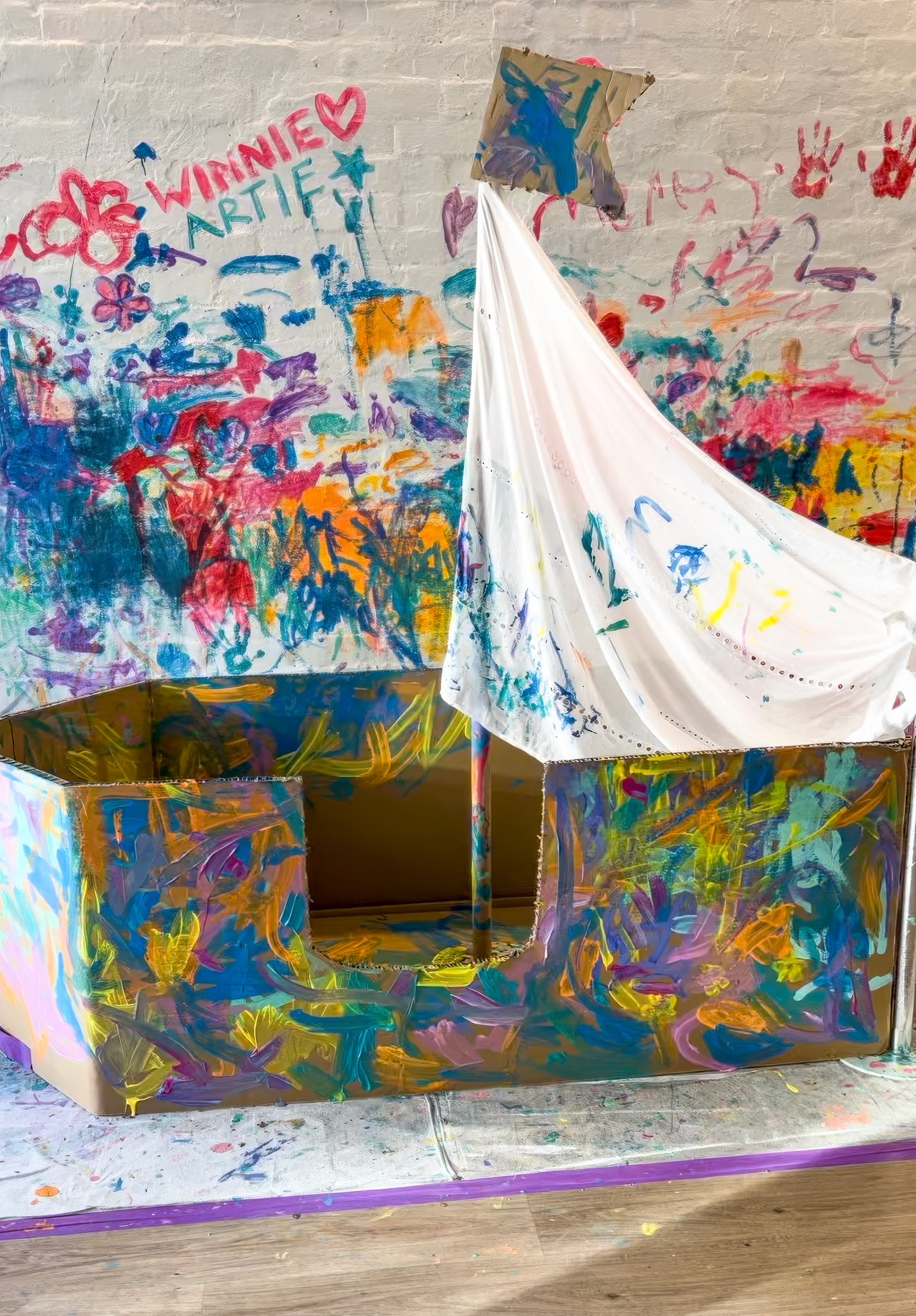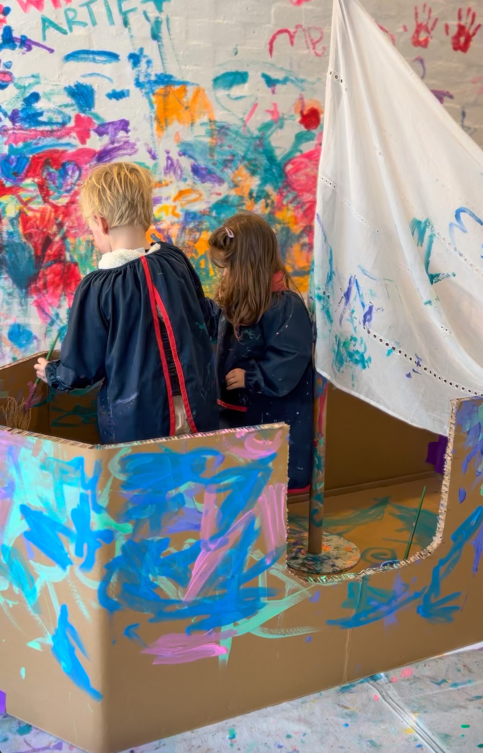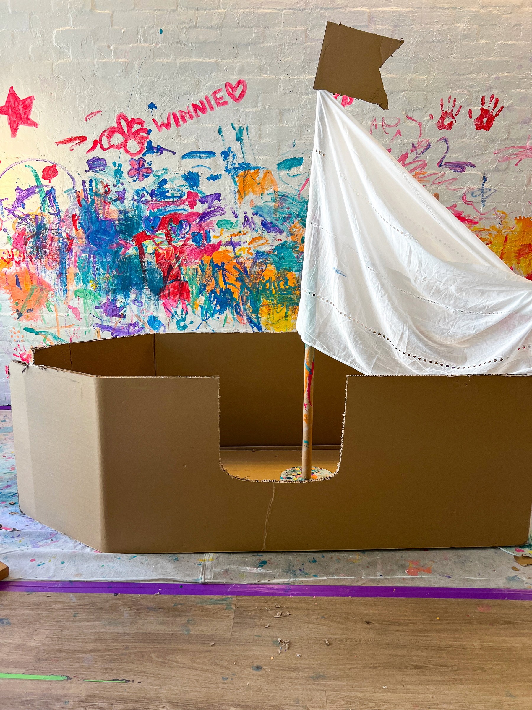 The ship only needs a hint of colour before it comes to life. Installation pieces like this invite children to work together, move through their creation and fill the space with their own stories. The making is less about the ship itself and more about giving them a space big enough for imagination to steer.