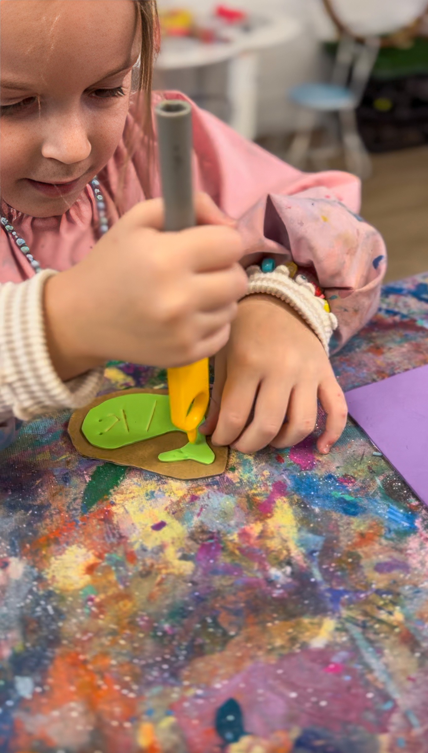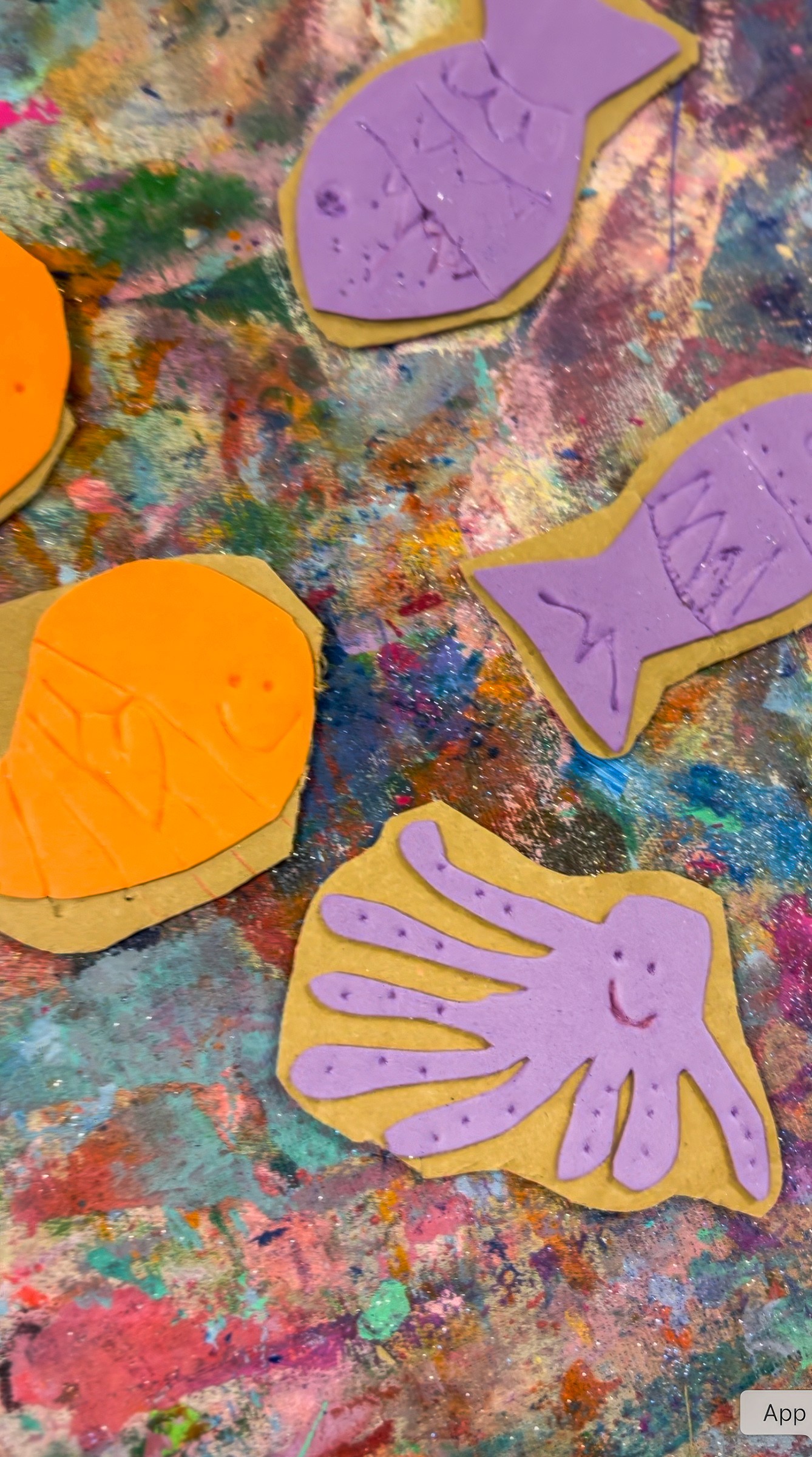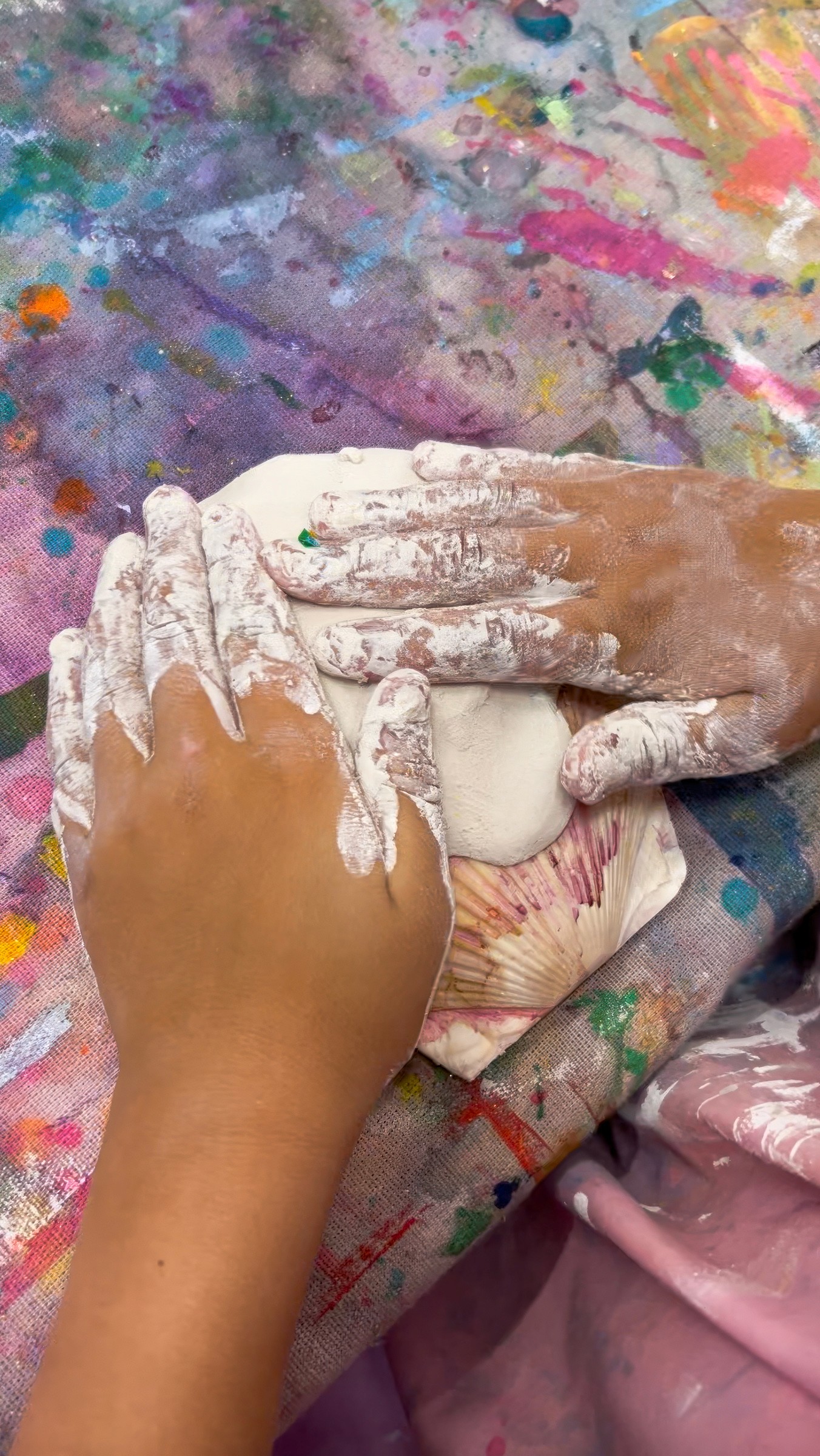 Begin by kneading or “throwing” the clay against the table to warm it up. This makes it easier to shape. Then build! We’ve seen coral reef trays, clam shells, bowls, and abstract ocean forms. The magic comes when kids press their chosen treasures into the clay, embedding them as permanent memories.