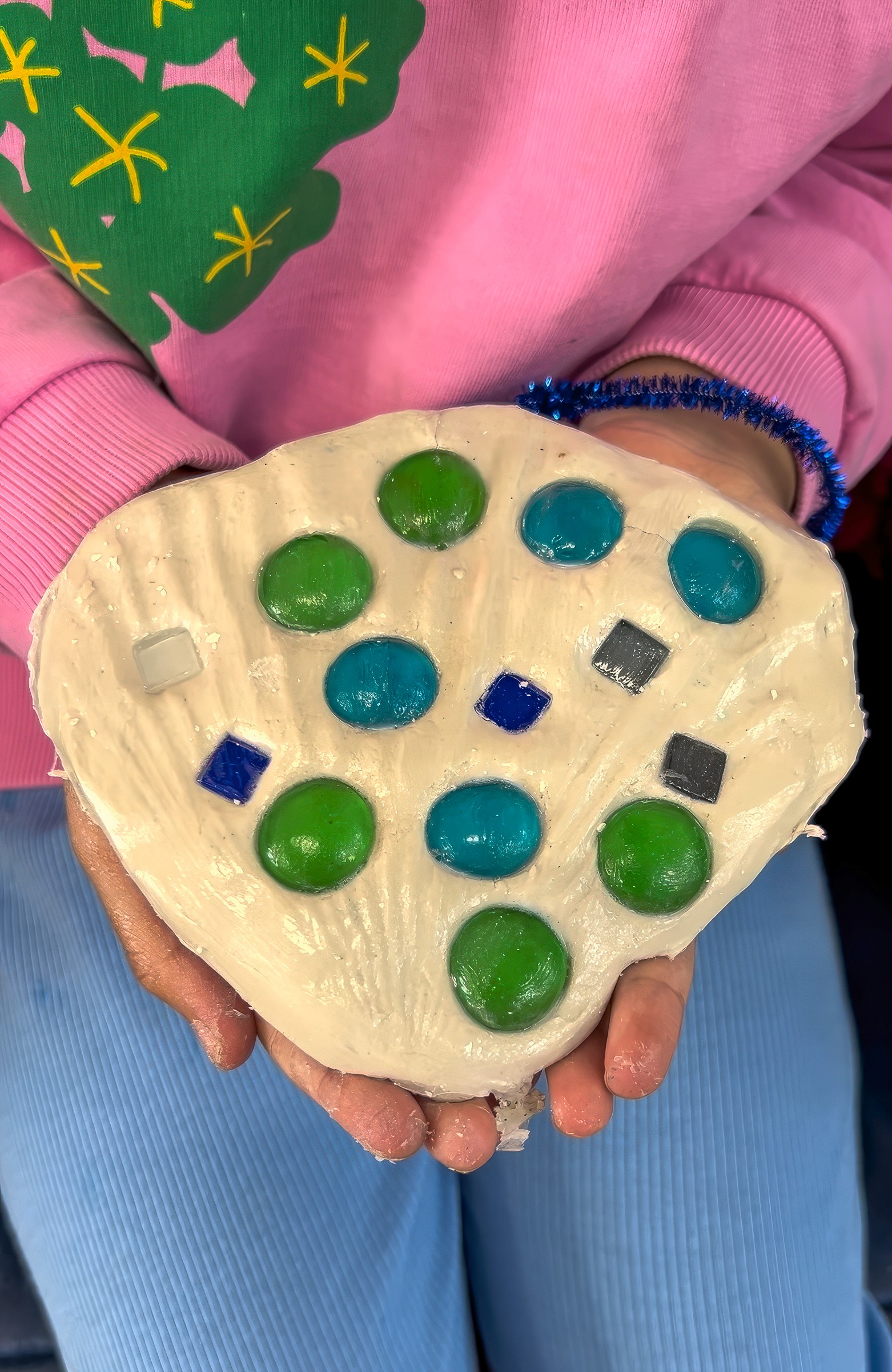 If you want to spark ideas, ask the kids to notice the colours already hidden in the shell. Many shells carry faint pinks, soft purples or streaks of gold that only appear when you look closely.
