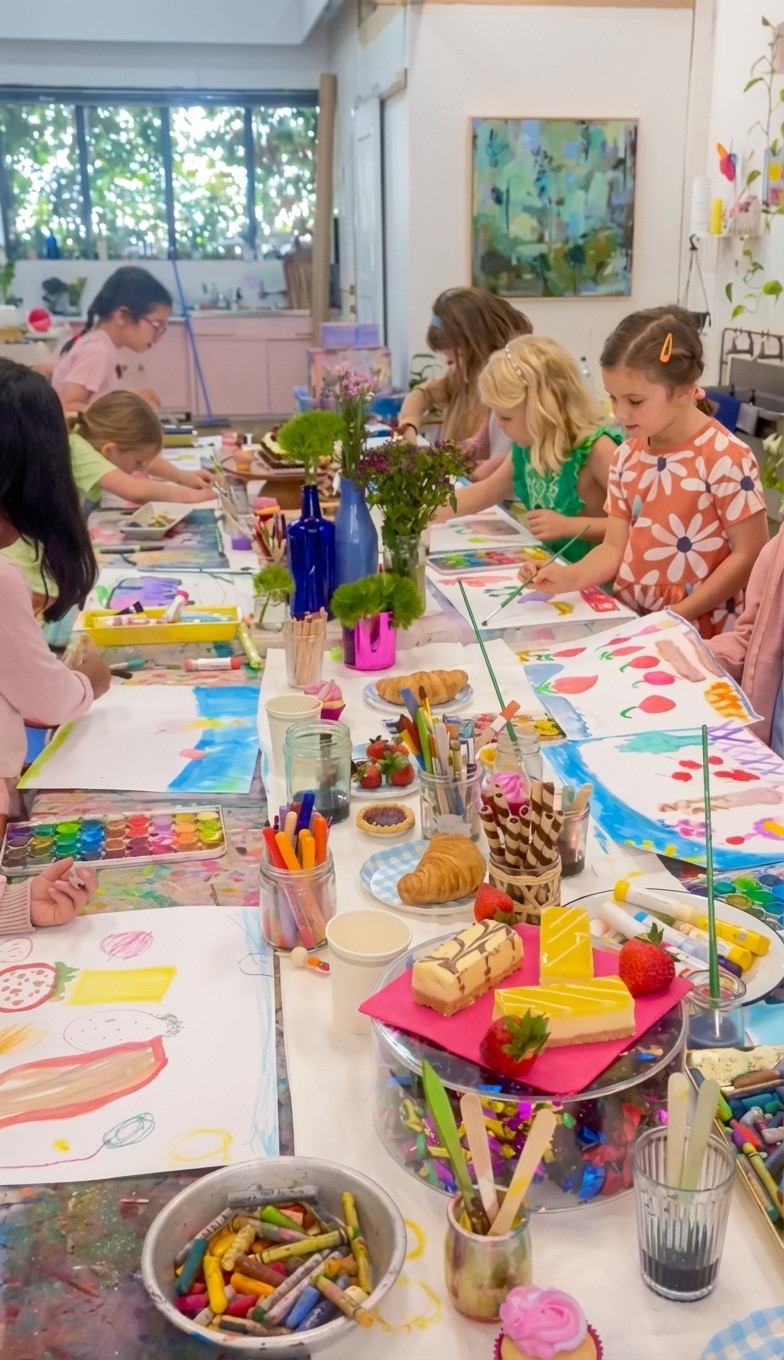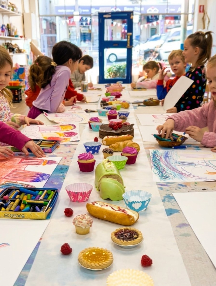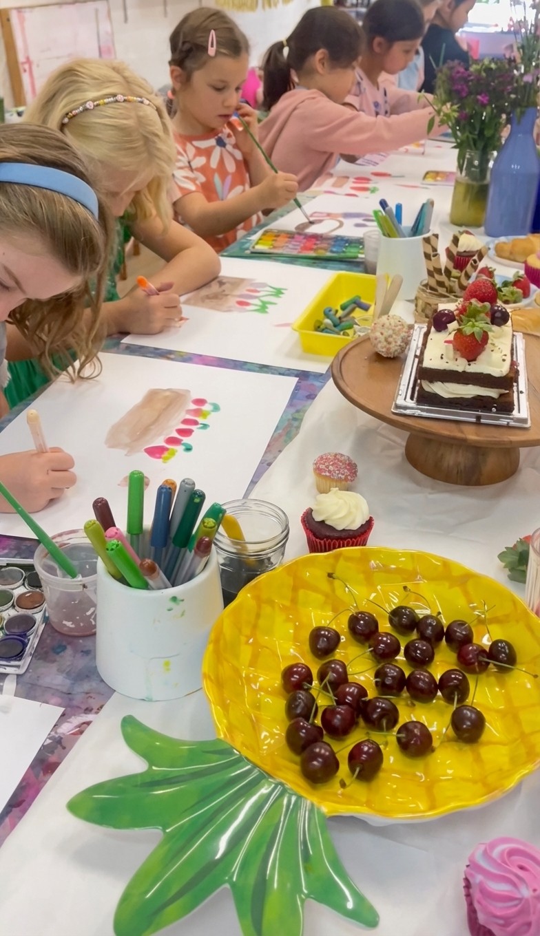 Sweet Treat Still Life days at Smudge are always a bit special! Set up the still life like you’re styling a table you’d actually love to sit at. Cake stands, plates, boxes, stacked boards. Different heights really make all the difference, and try to leave a little breathing room between each treat (especially for younger kids) so that it's a bit simpler to see the form and shapes.