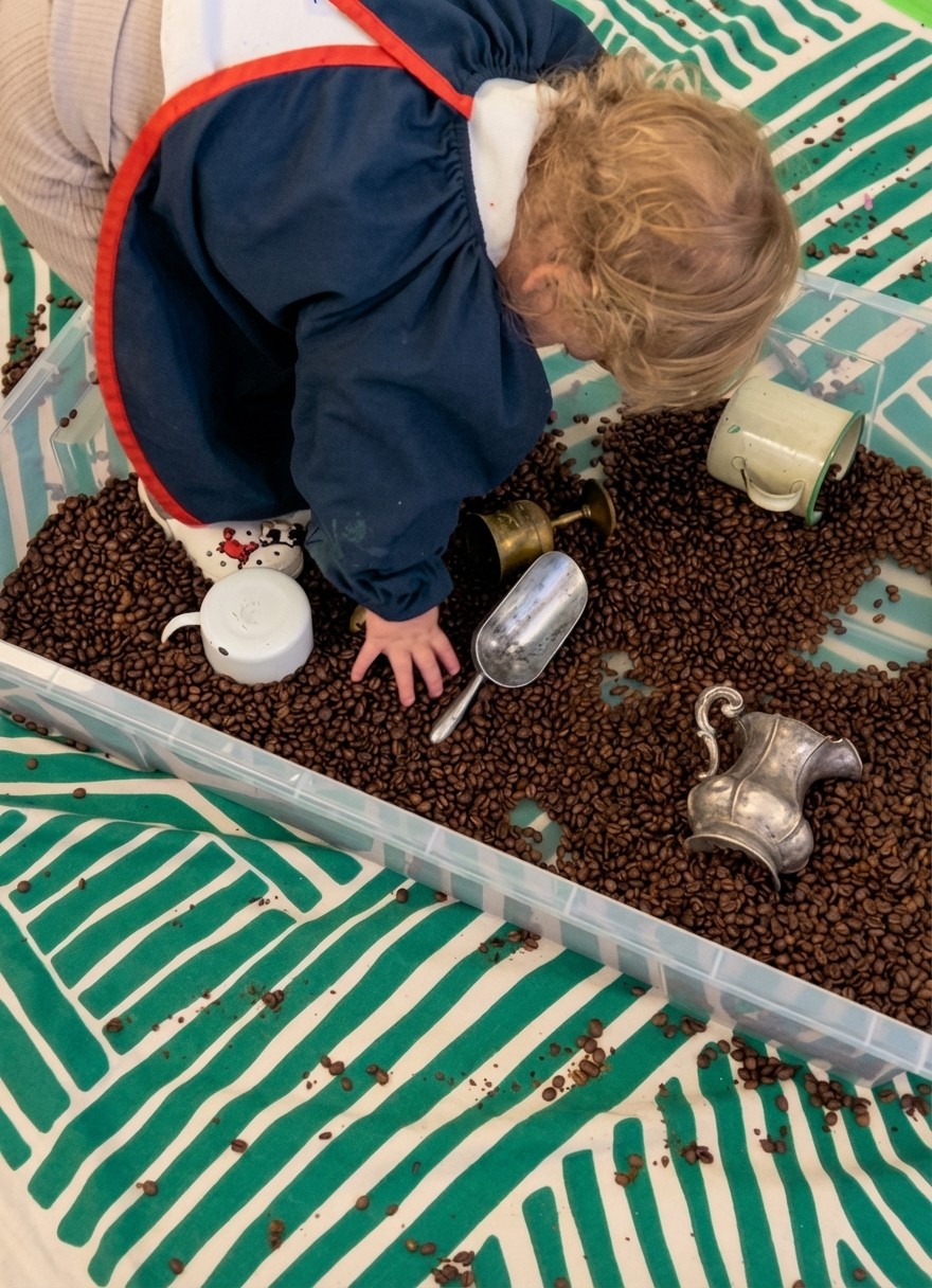 Coffee beans are kind of magic. They’re lightweight in little hands, smell incredible (for coffee-loving adults like me), and sound beautiful when they’re tipped and poured.
