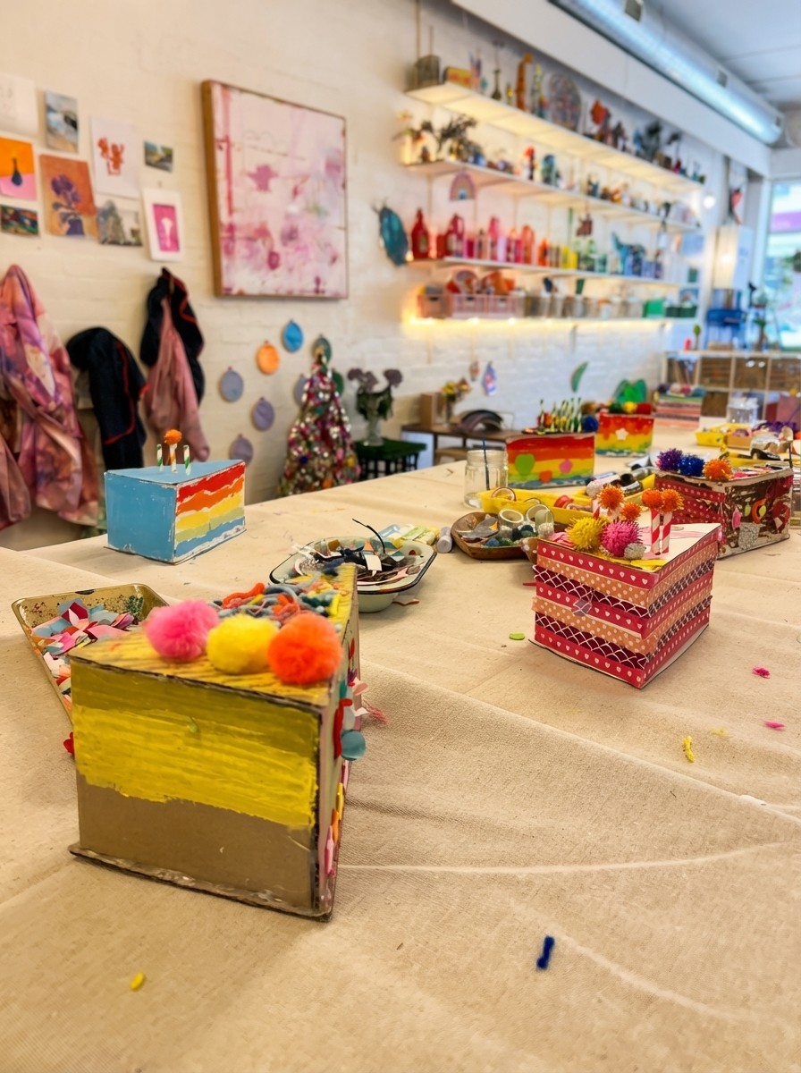 These cardboard cake slices are inspired by the joyful, colour-soaked workshops of Emma Collins in the UK, and they’ve brought so much delight to parties and classes at Smudge!