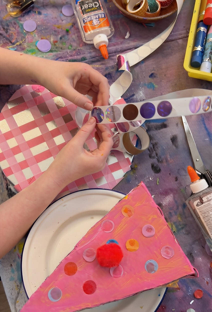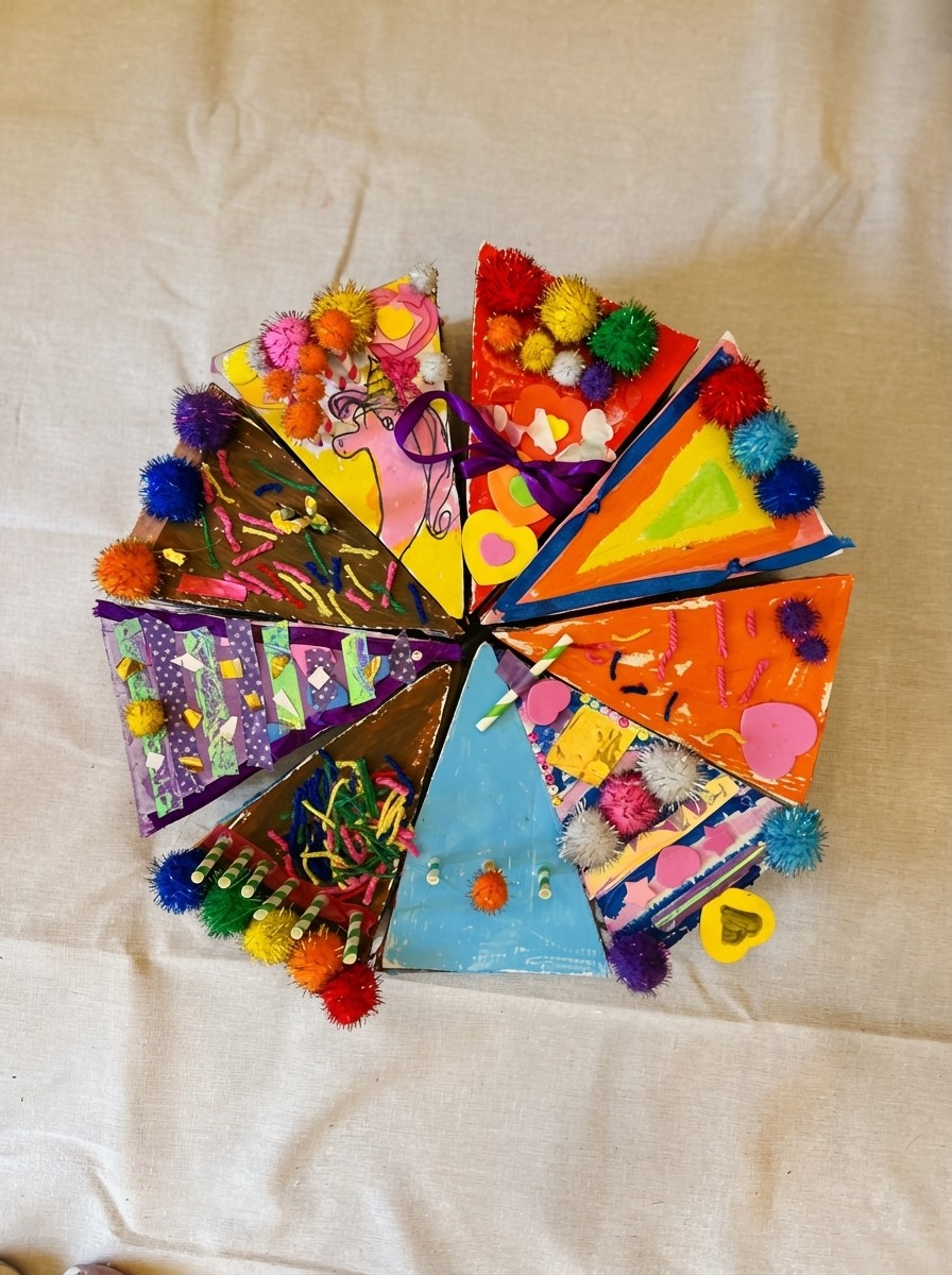 If you’re working with older kids (around 10+), the slices can absolutely be constructed by the artists themselves and then decorated during a later session. It becomes a beautiful mix of making, measuring, and figuring things out as they go!