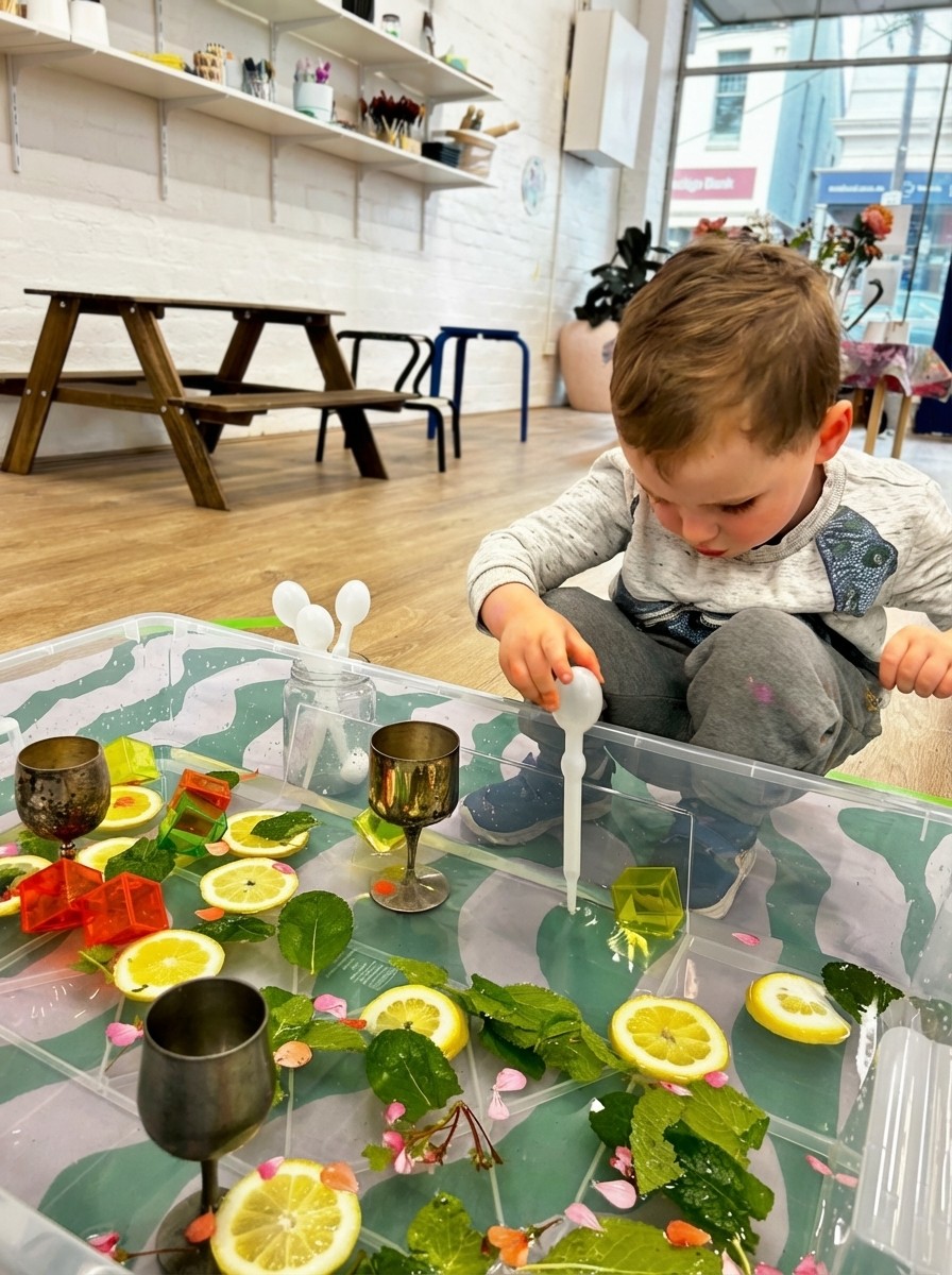 Water play doesn’t need much to be engaging, does it? Cool water, gentle colour, and a few thoughtful additions are more than enough!