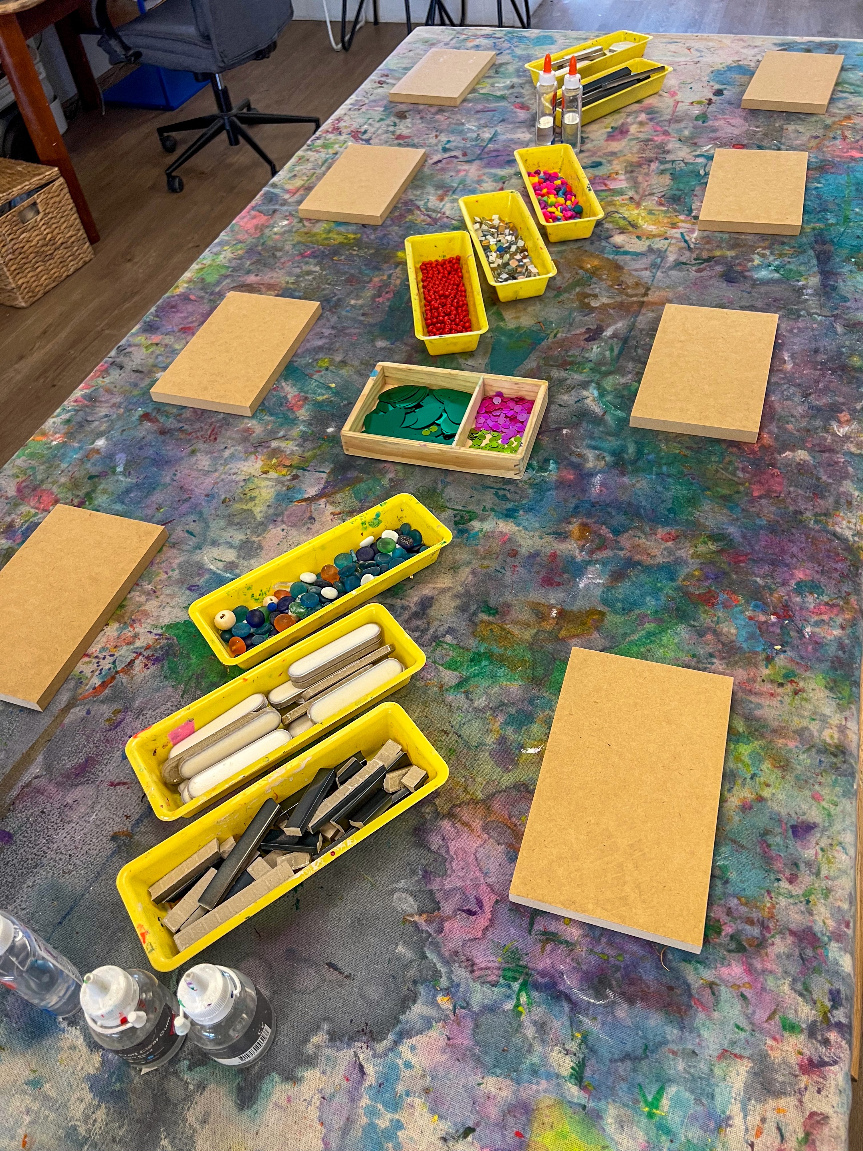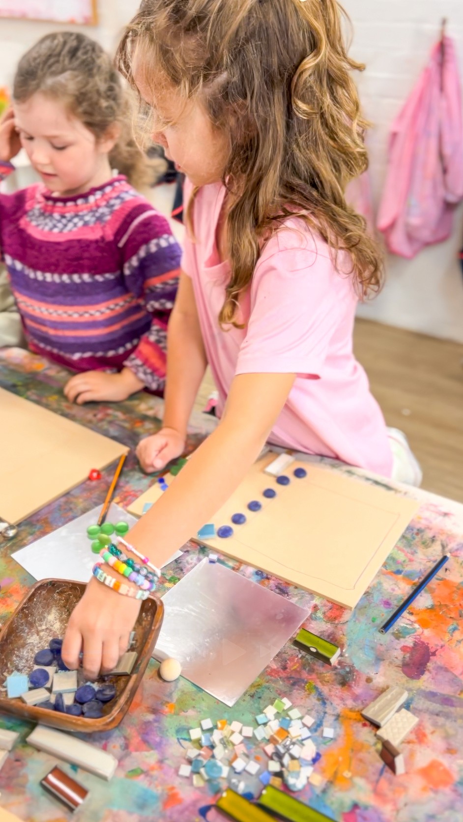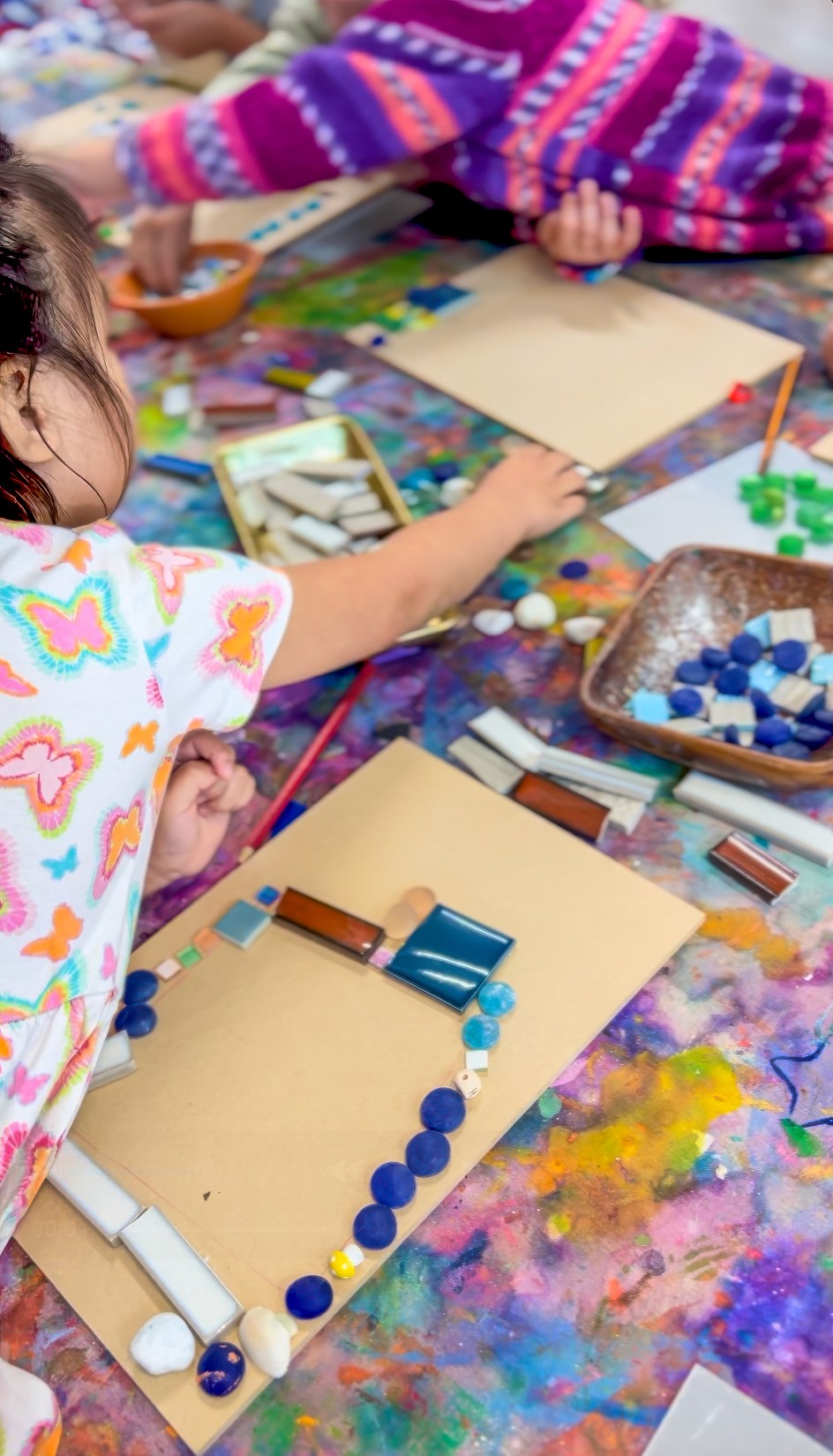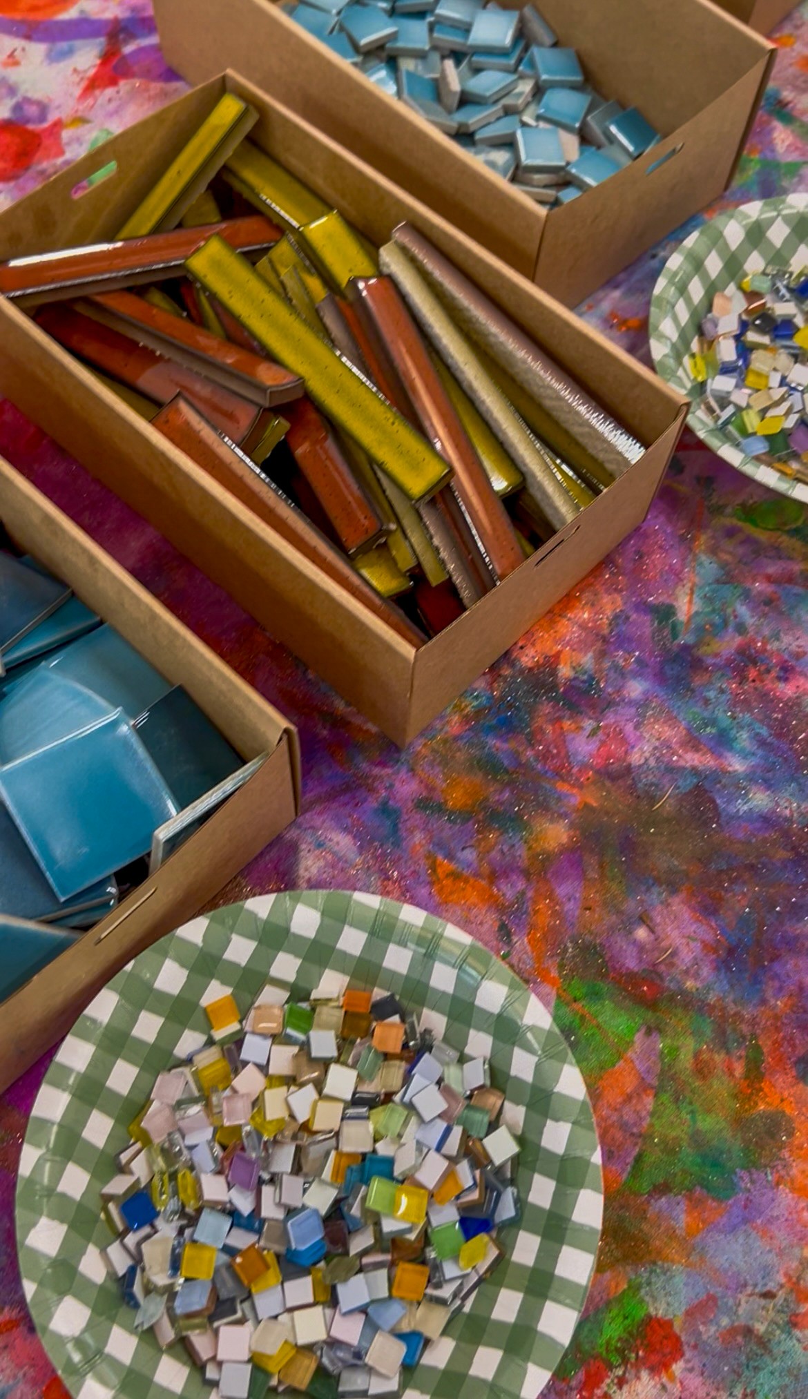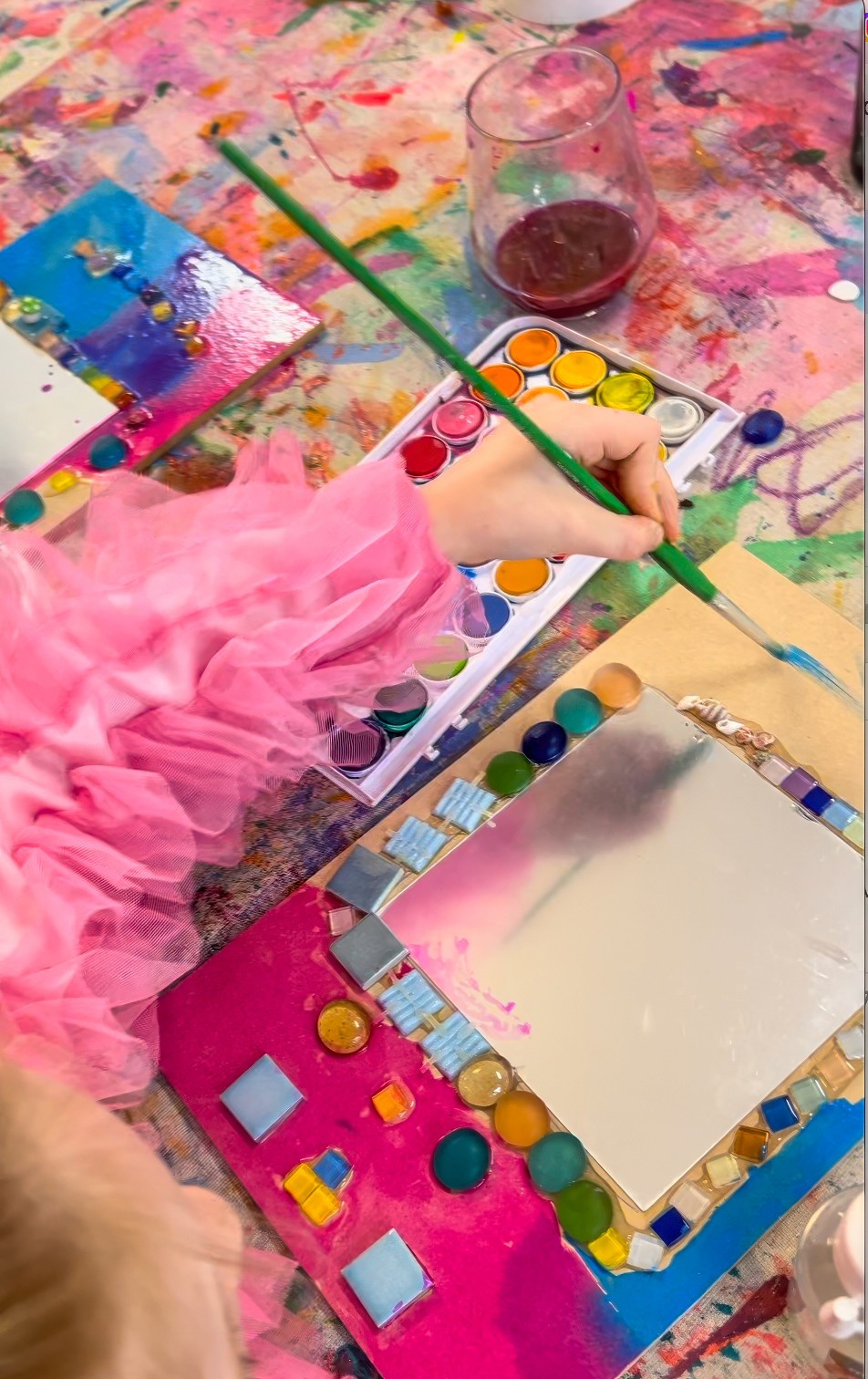 This is not a children’s art experience, but I’m including it because it ties in so beautifully with mosaics and it’s something I get asked about constantly. It is a little behind the scenes Smudge build moment from 2023!