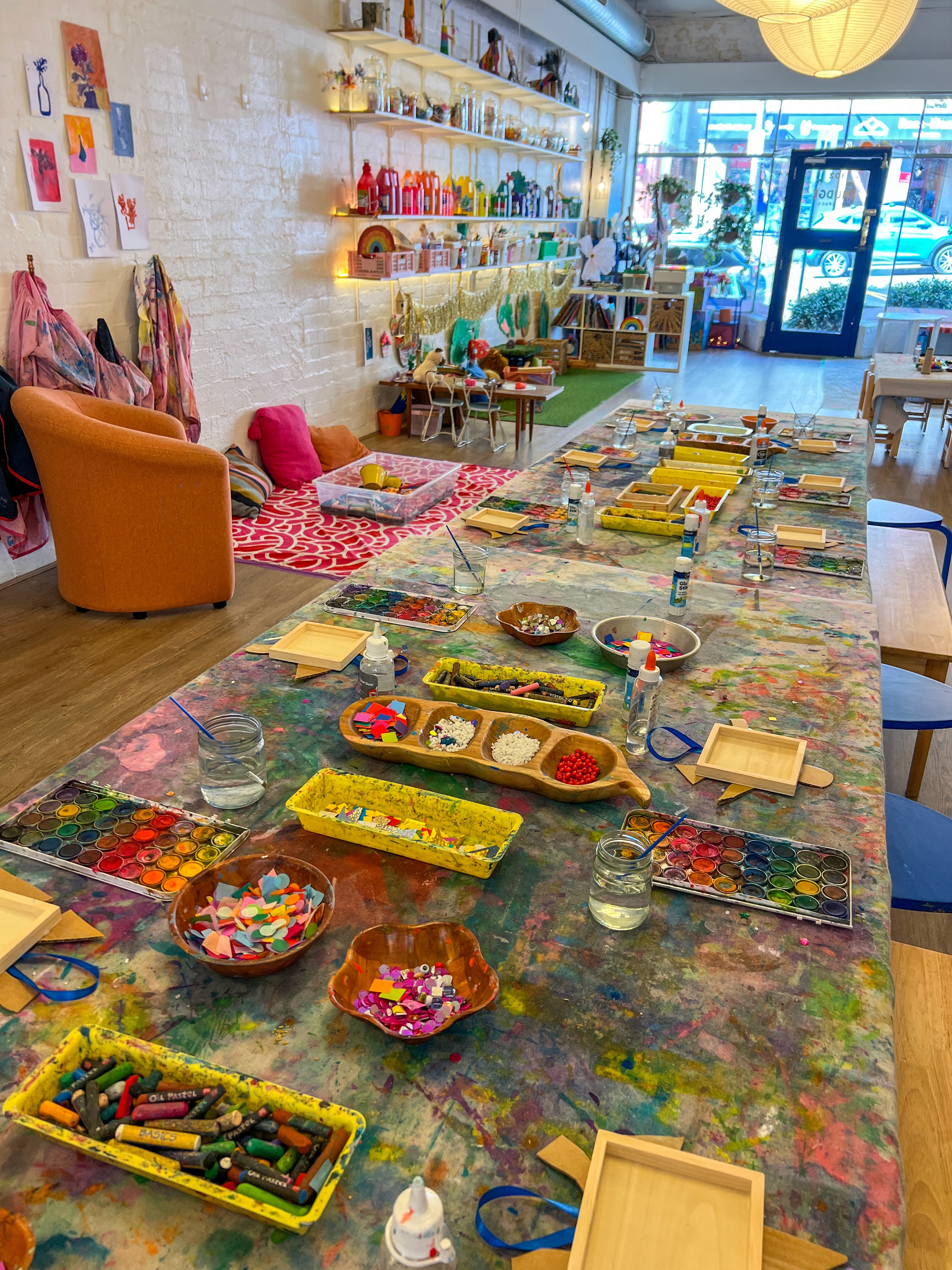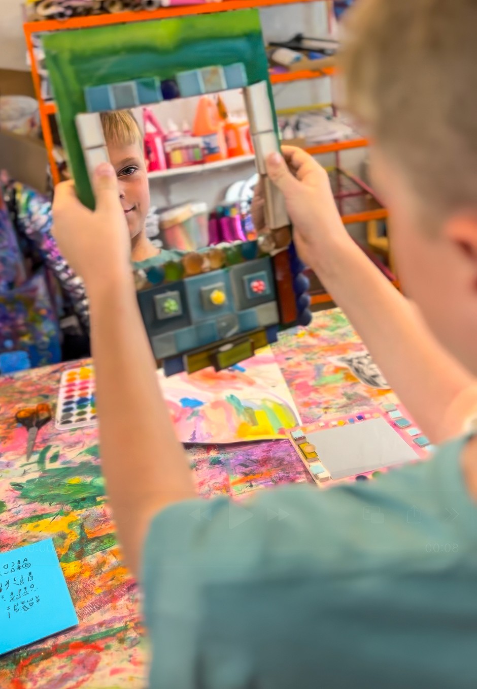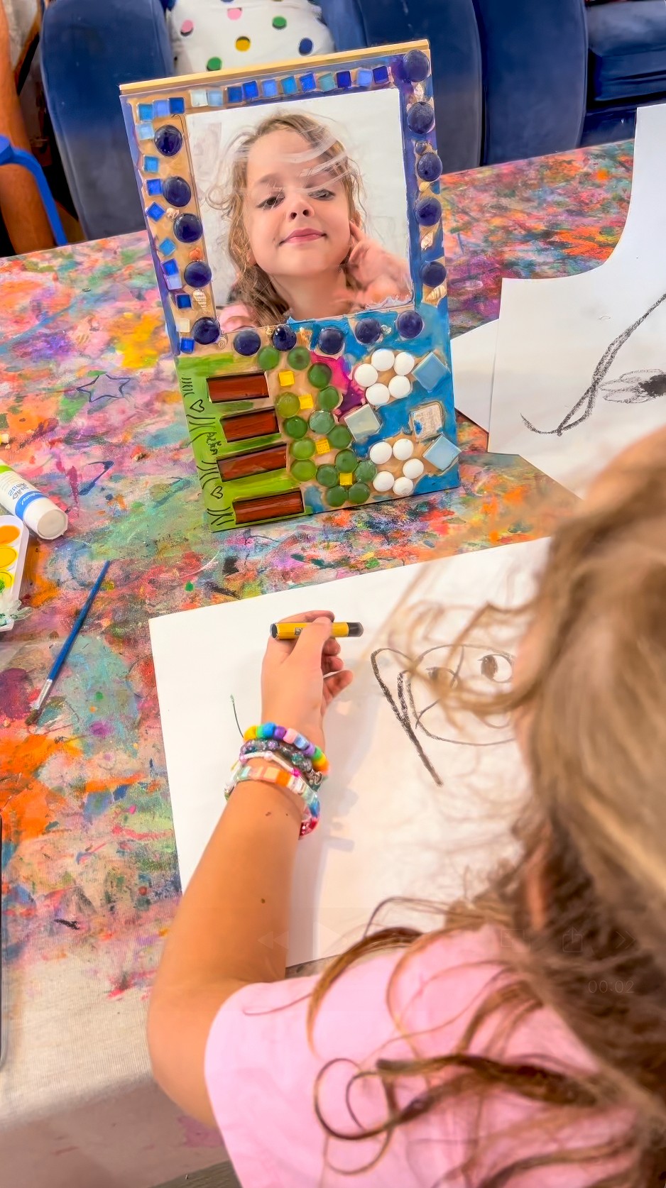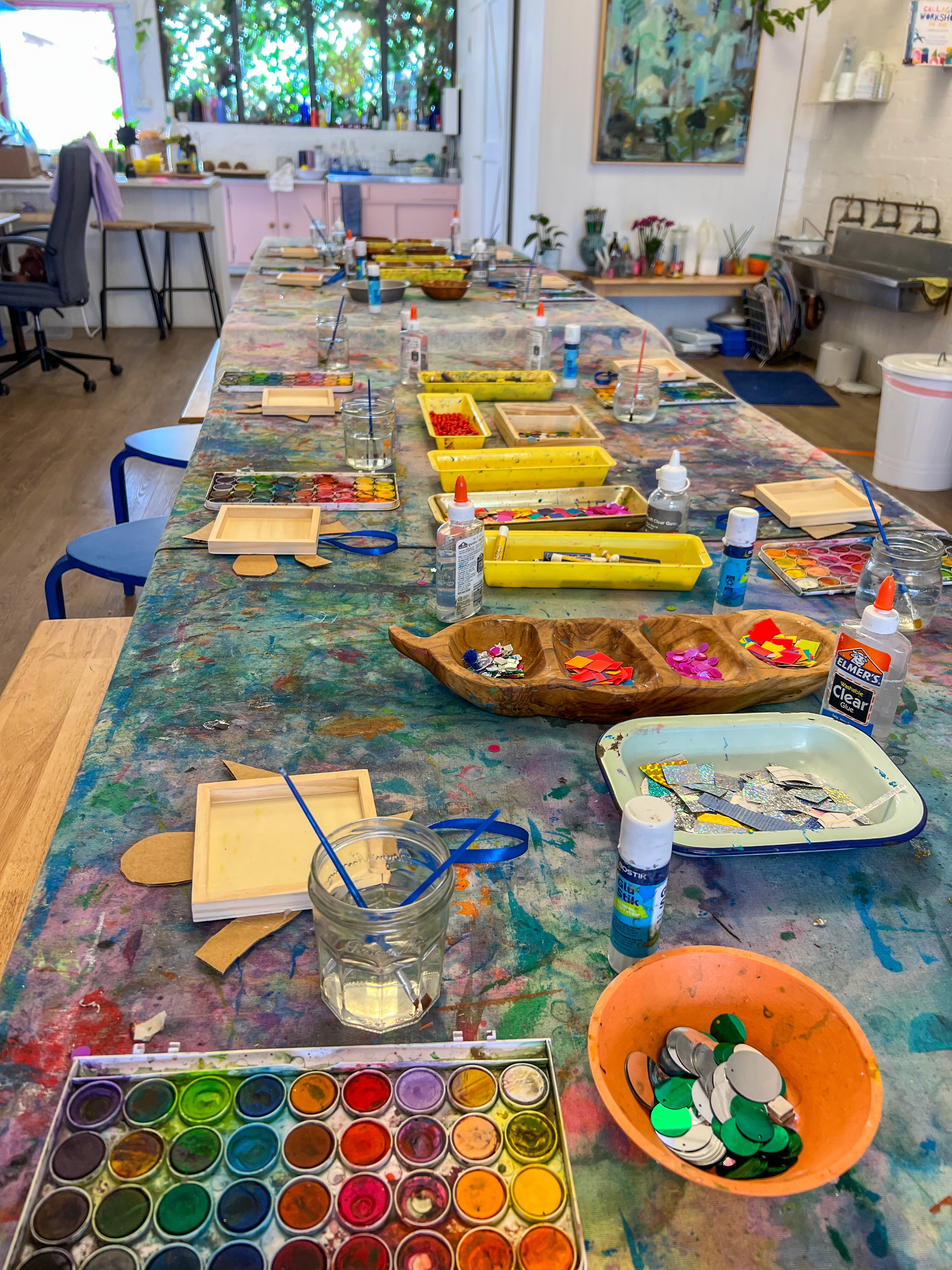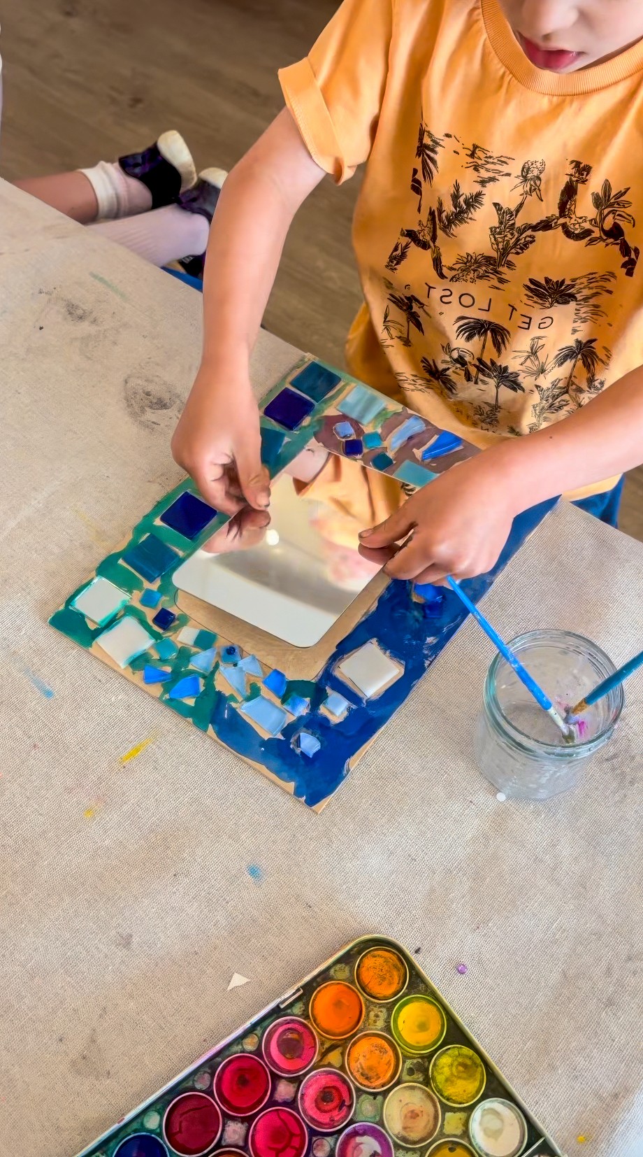 This is not a children’s art experience, but I’m including it because it ties in so beautifully with mosaics and it’s something I get asked about constantly. It is a little behind the scenes Smudge build moment from 2023!