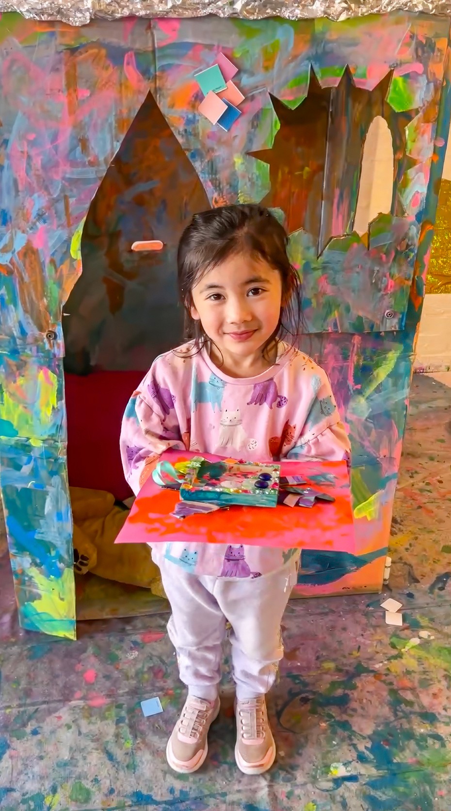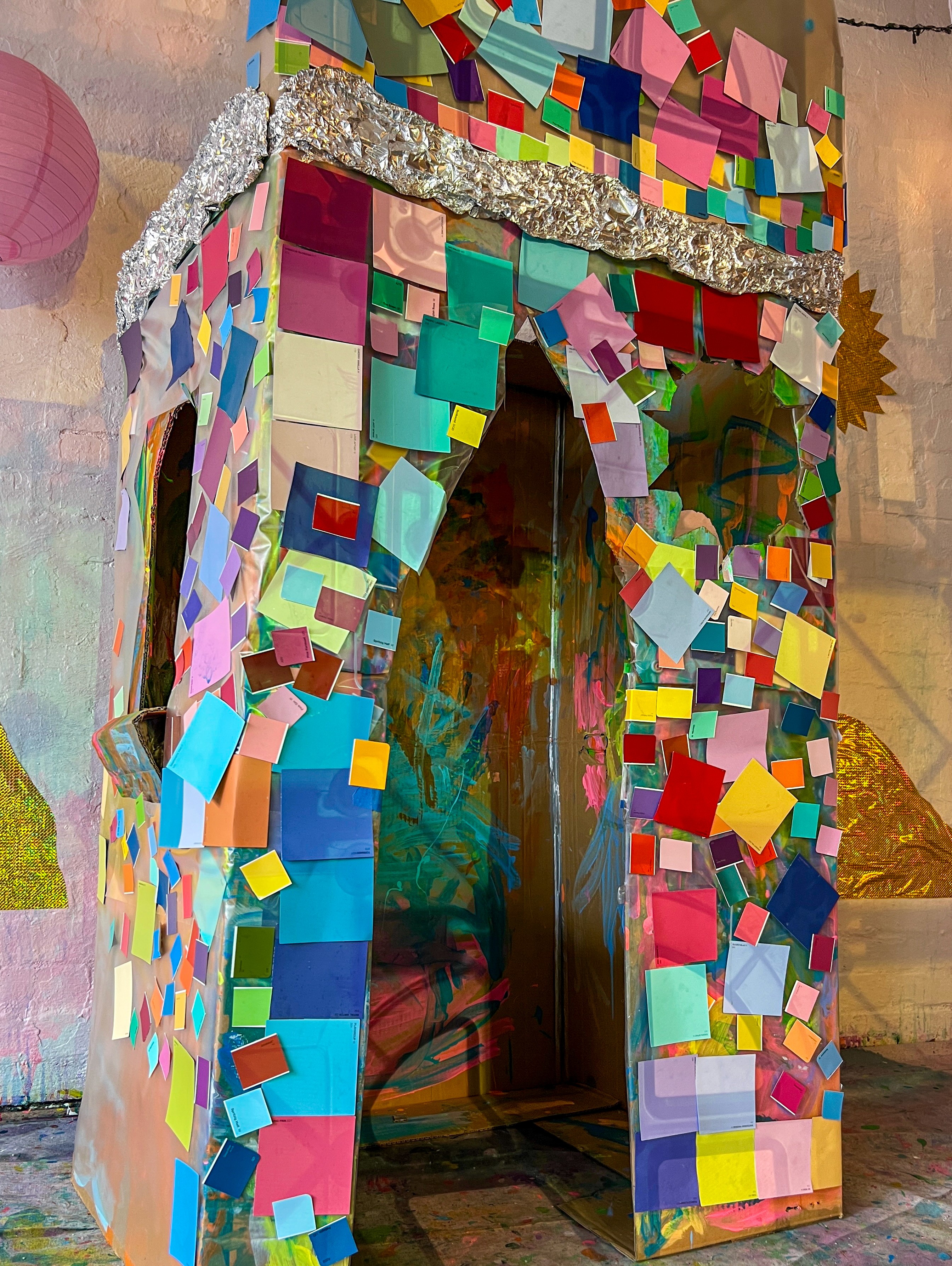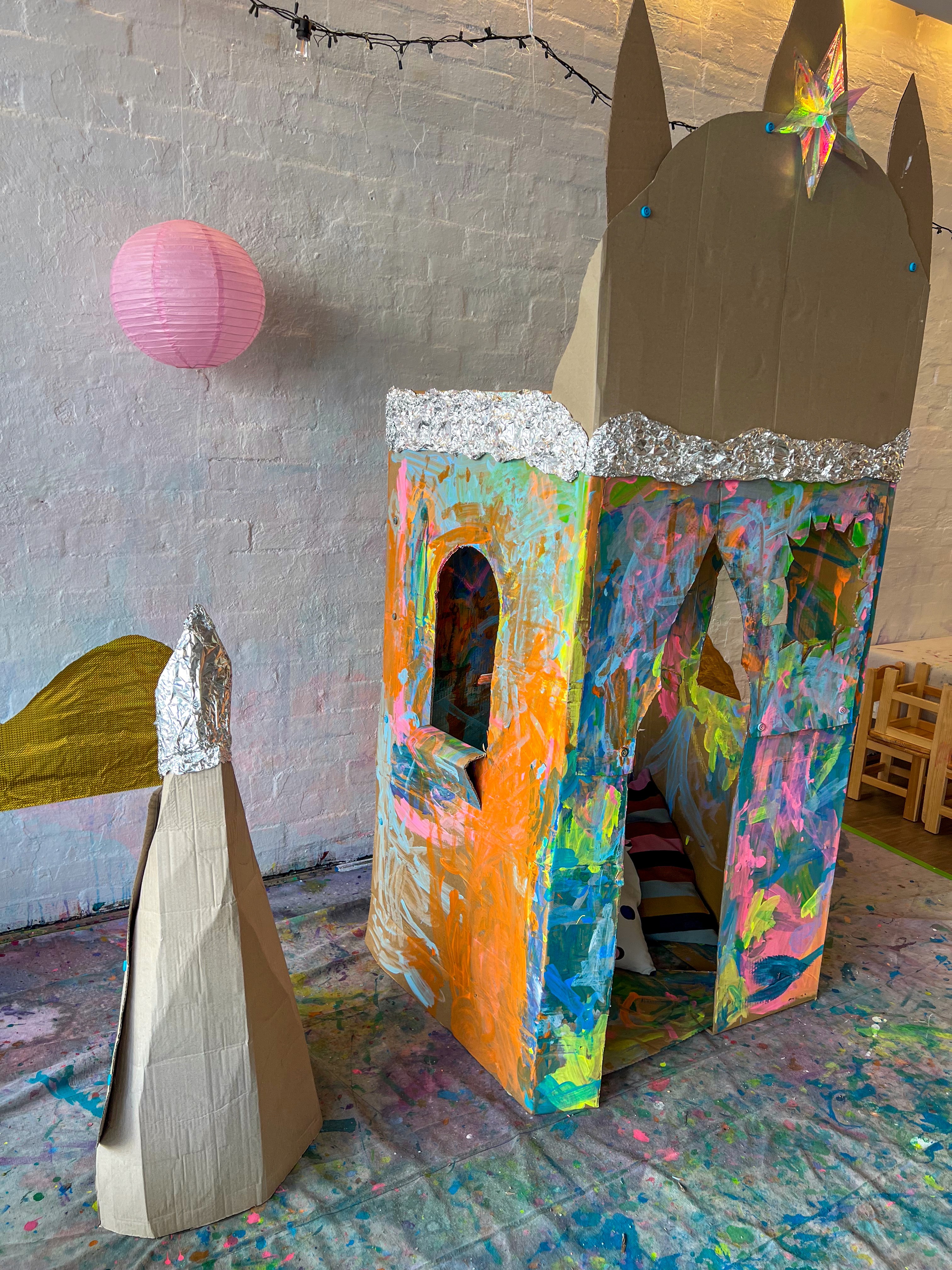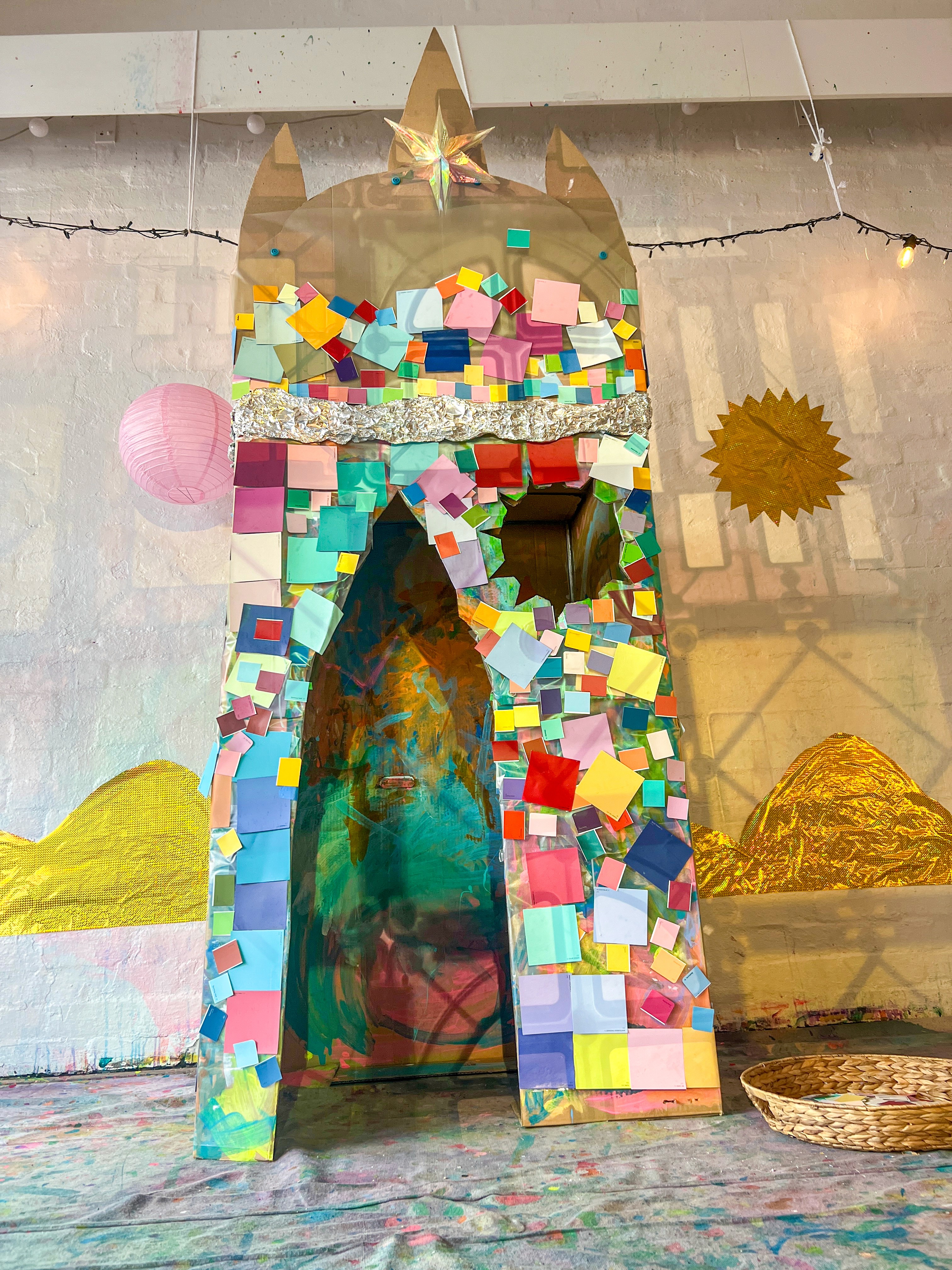 A giant cardboard cathedral for collaborative mosaic play.