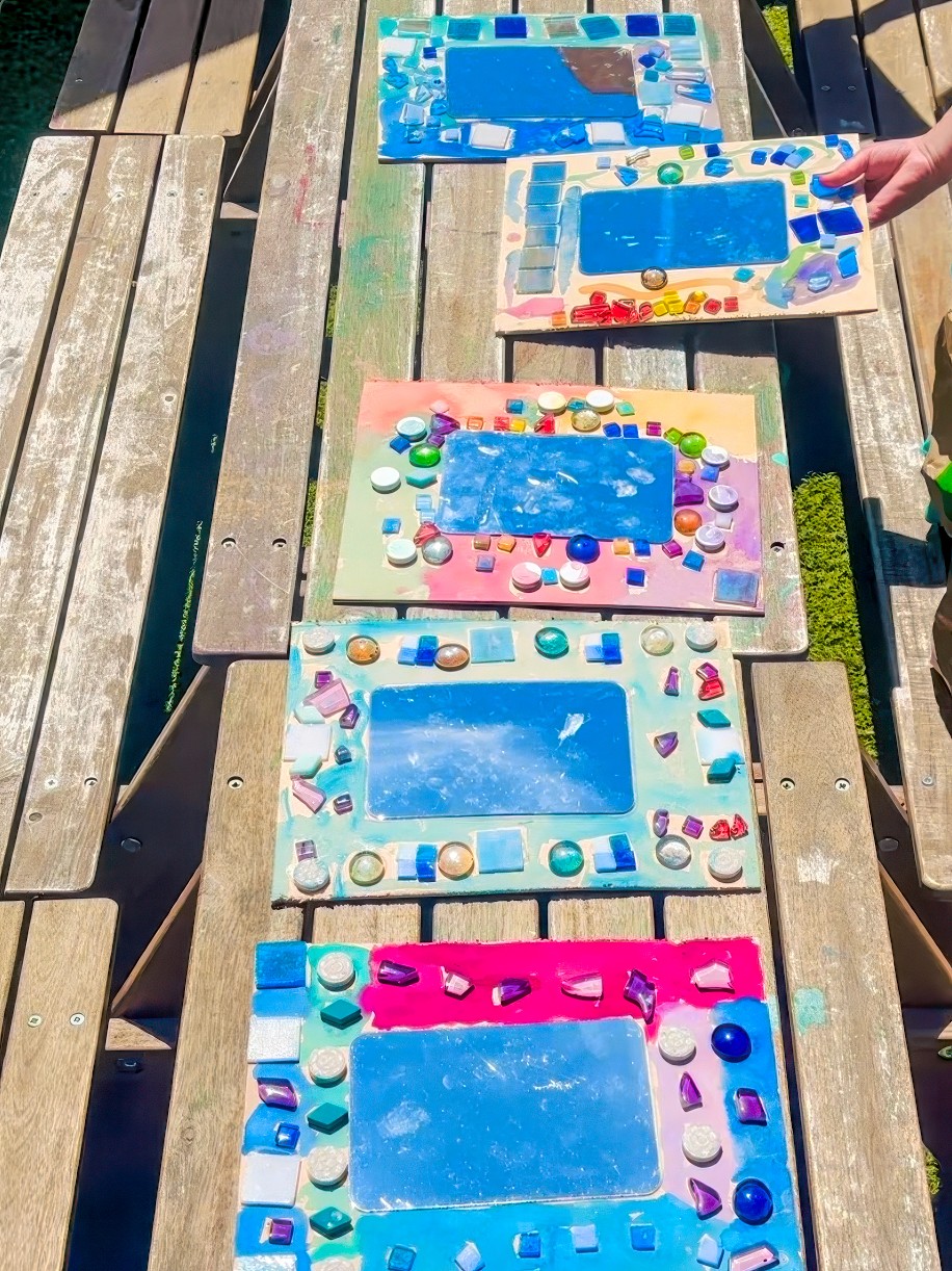 I love observing the choices here and supporting kids to trust their instincts and not overthink. Any colour can go anywhere! Overlapping like real tiles. Leaving gaps. Building density in one area and calm in another. It becomes this big, beautiful patchwork of personality. I think Gaudi would be very proud.