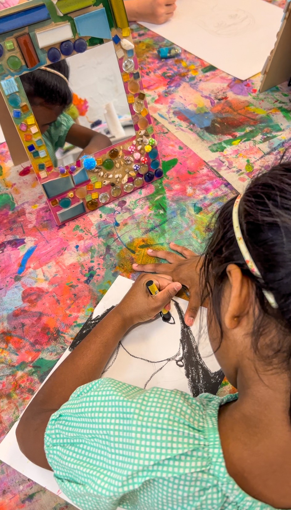 Smudge tip, I love using the mirror for a self portrait straight away, but it can also become a prop for imaginative play or a beautiful piece to hang at home.