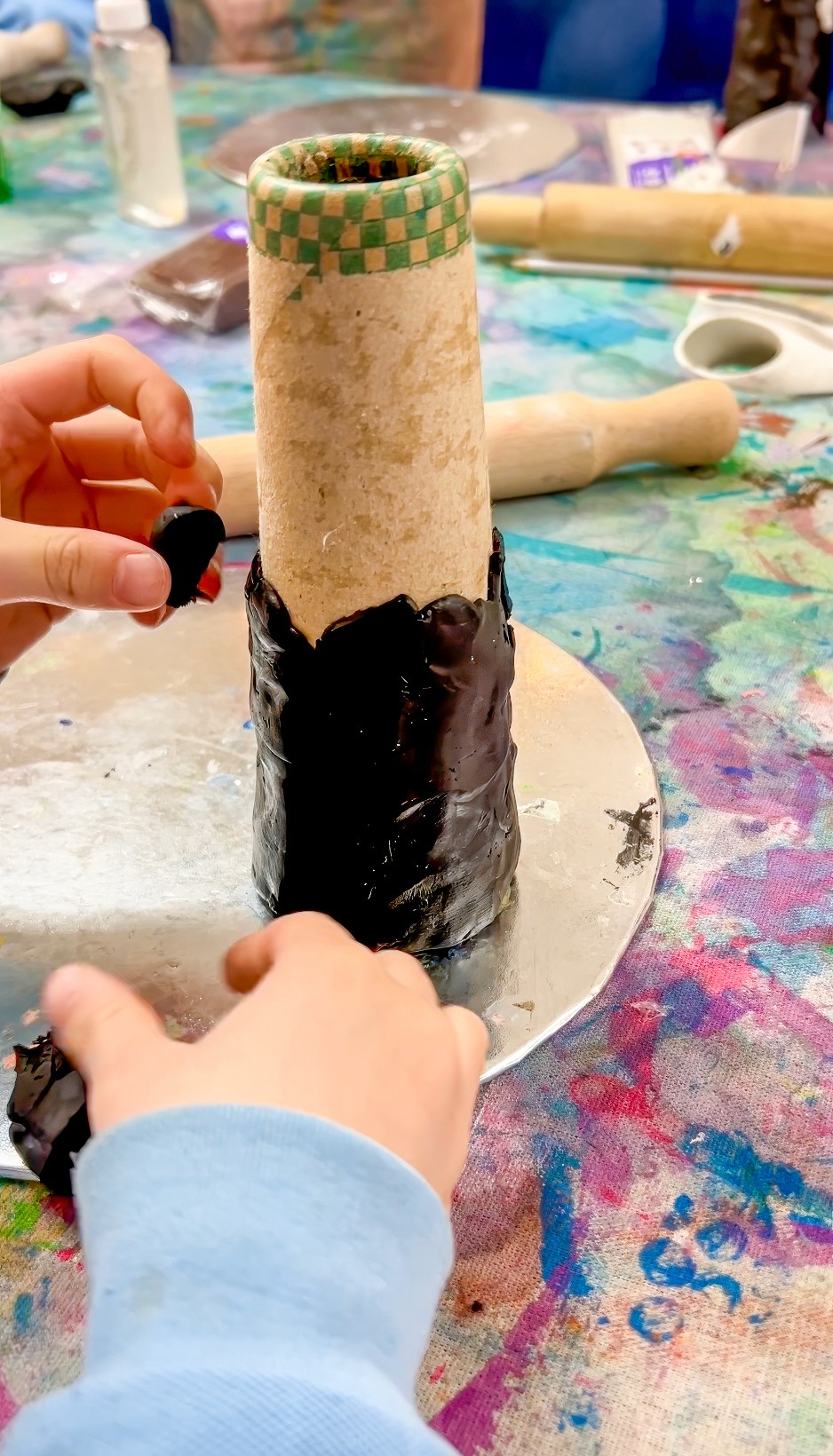 The trick that makes this version feel really Gaudí to me is using a dark plasticine base. Black is my favourite because it makes every colour pop, but truly, any deep colour works.
