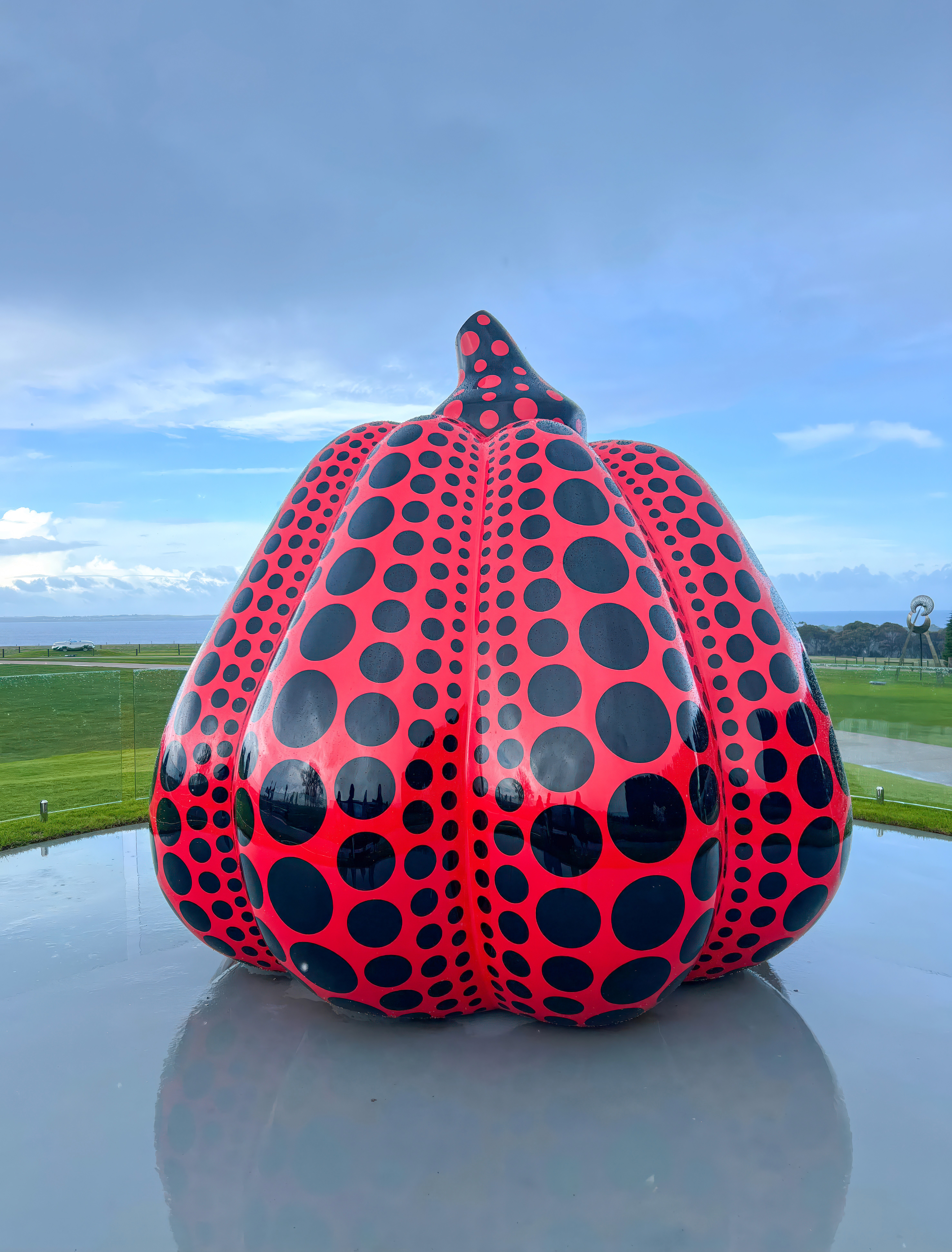 Kusama and her pumpkins; they pop up everywhere! The yellow one perched on a pier in Naoshima, the red and black beauty at Pt Leo Sculpture Park just outside Melbourne. The first time I saw it, I could not stop circling it. It is enormous and ridiculous and utterly joyful! I think that is what I love about Kusama’s pumpkins: they take something ordinary and make it feel like the most magical object in the world.